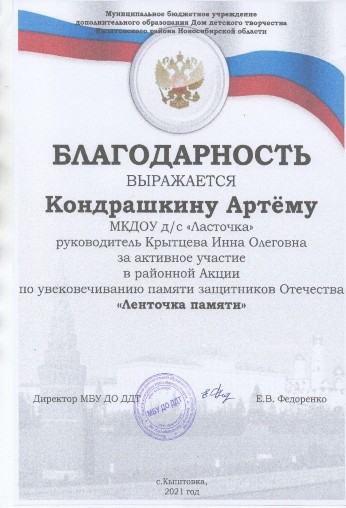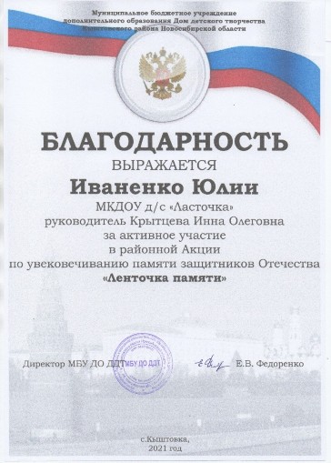 Крытцевой Инны Олеговны